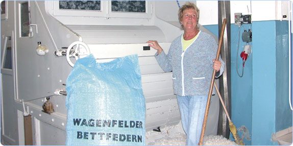 Besonders empfehlen können wir Ihnen die Bettwaren aus eigener Produktion. In unserer Bettfedernfabrik stellen wir seit 1950 Federbetten und Kissen bester Qualität her.